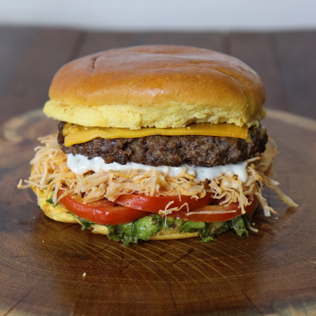 Pão, 2 carne ,2 queijo, salada e creme da casaR$ 18,99